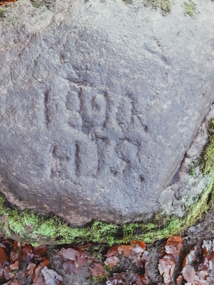 Stenen med 1890 inhuggit. Sedan står det HJS. Foto - Jacob Lüning